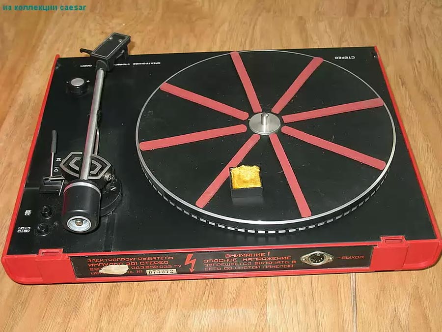 Электропроигрыватель имеет две скорости вращения диска: 33,33 и 45,11 об/мин.