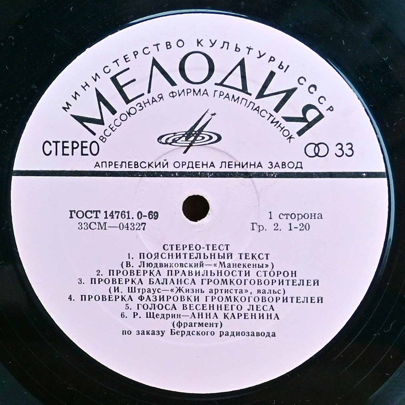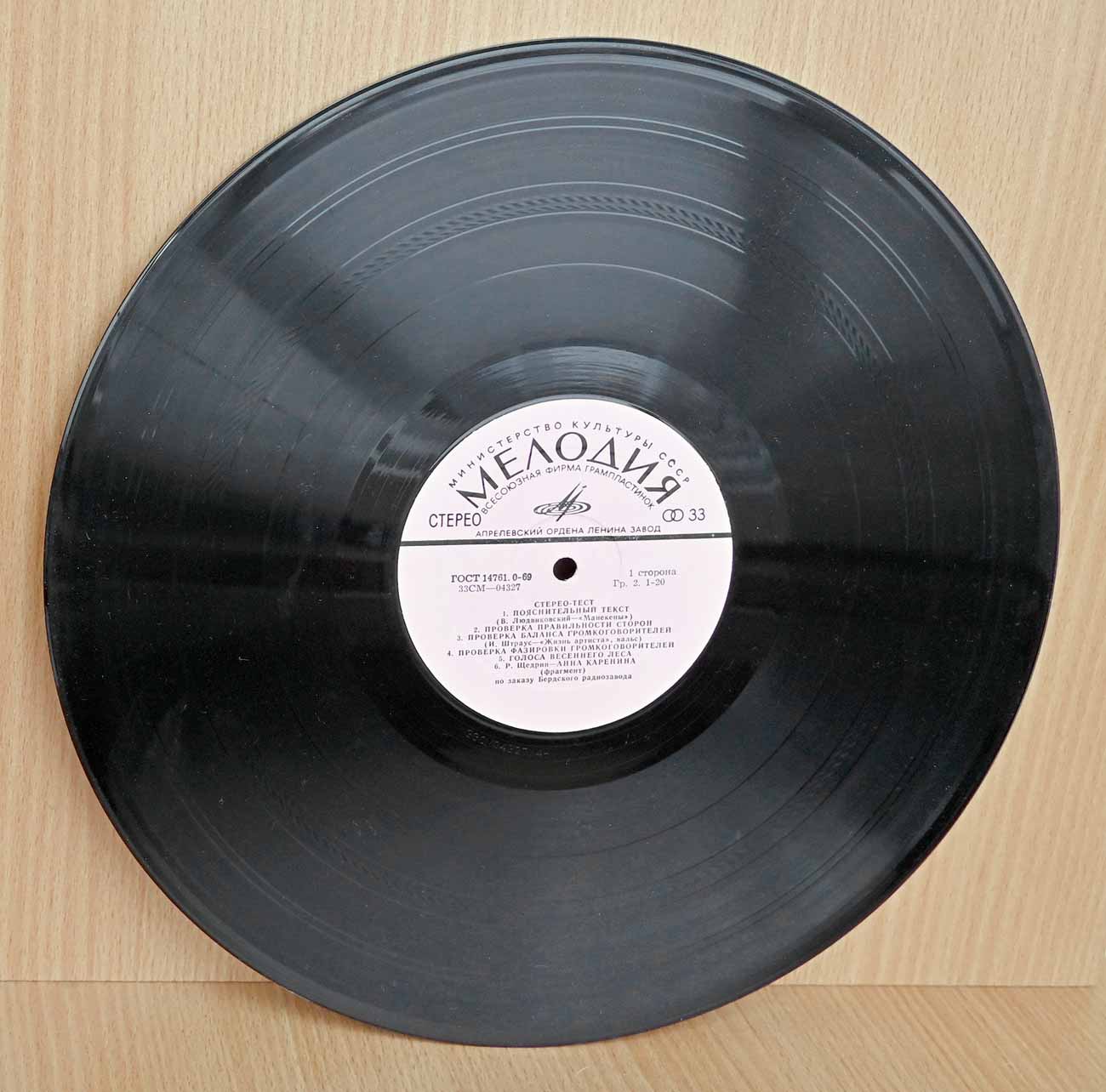 Тестовая грампластинка "Стерео-тест" выпускалась с 1974 года Апрелевским ордена Ленина заводом грампластинок, по заказу Бердского радиозавода. Фотографии Вячеслава Булочникова, город Мытищи.