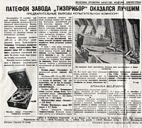 - на странице патефона "ПТ-3" патефонного завода "Молот" города Вятские