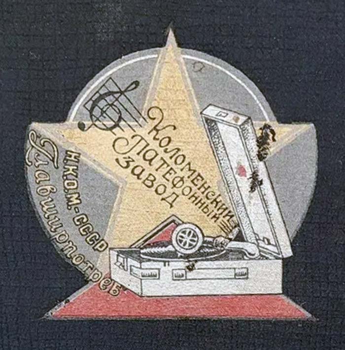 Коломенского патефонного завода с надписью на эмблеме "Н.К.О.М. СССР Главширпотреб"