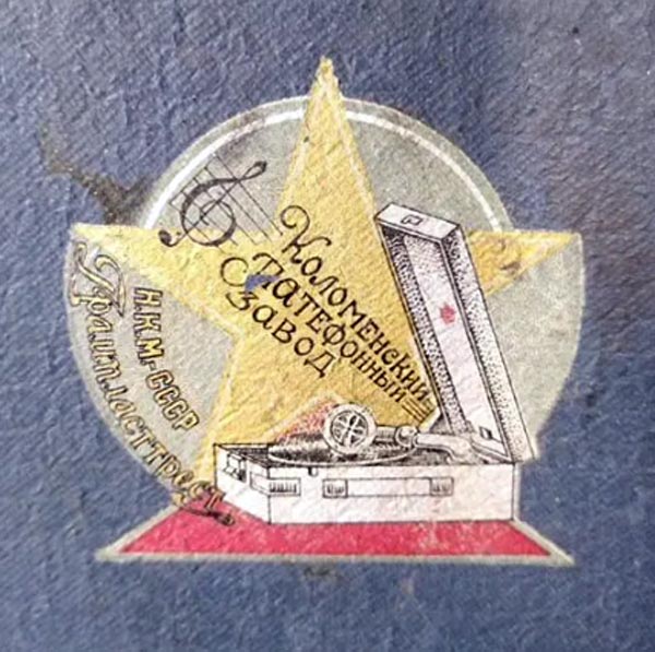 с надписью на эмблеме "Н.К.М. СССР Грампласттрест Коломенский