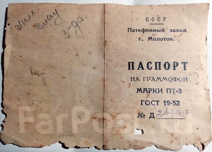Патефон (граммофон) марки "ПТ-3" выпускался