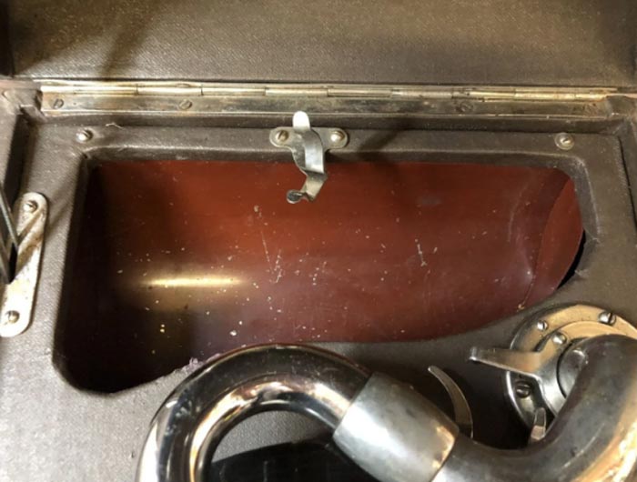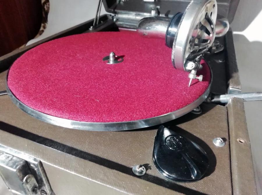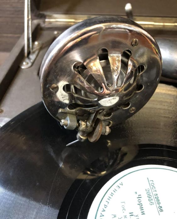 стороне крышки патефона появилось крепление для установки патефонных пластин.
