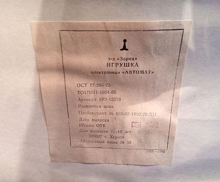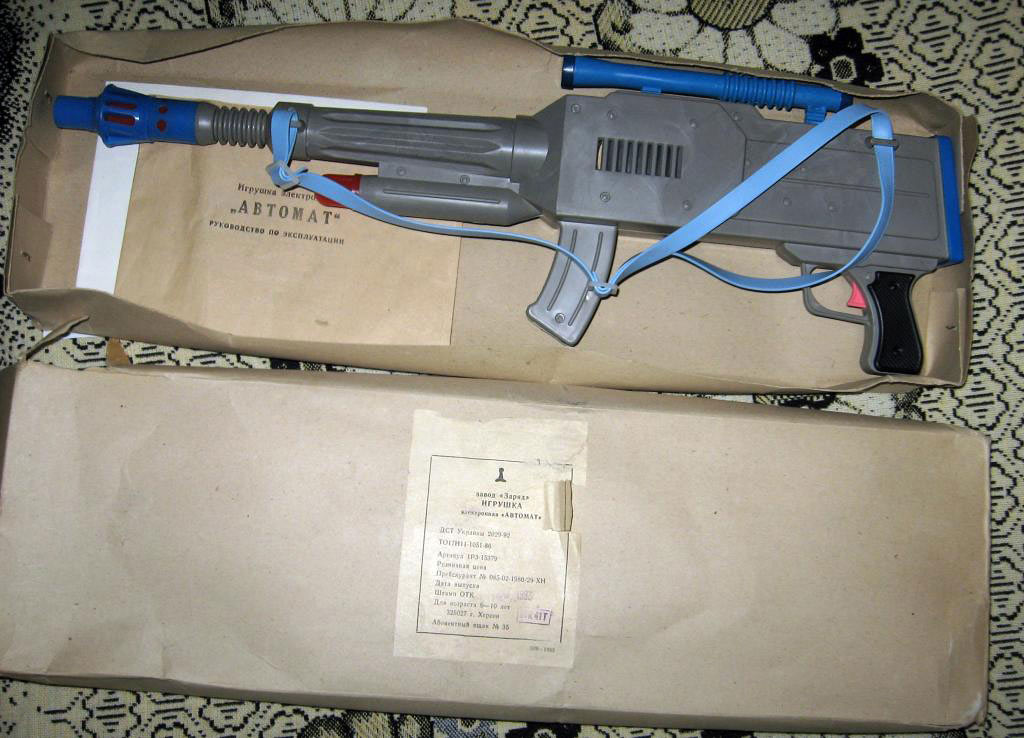 Игрушка электронная "Автомат" выпускалась возможно с 1991 года Херсонским заводом "Заряд". Для организации детских (мальчиковых) военных иг