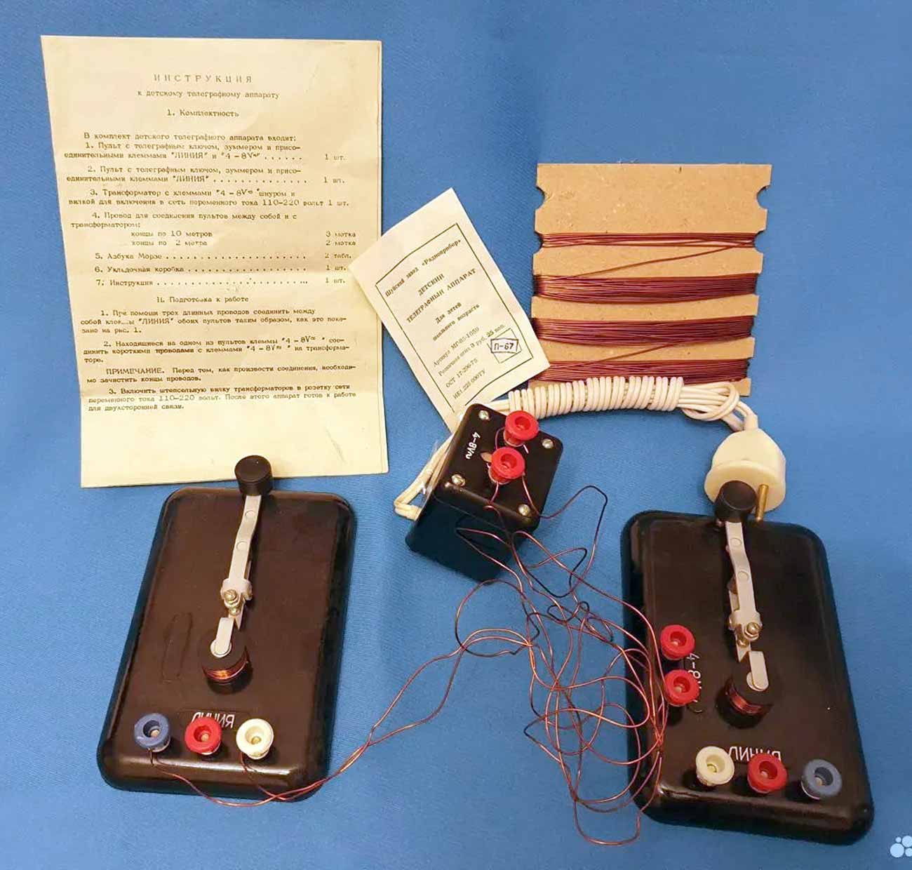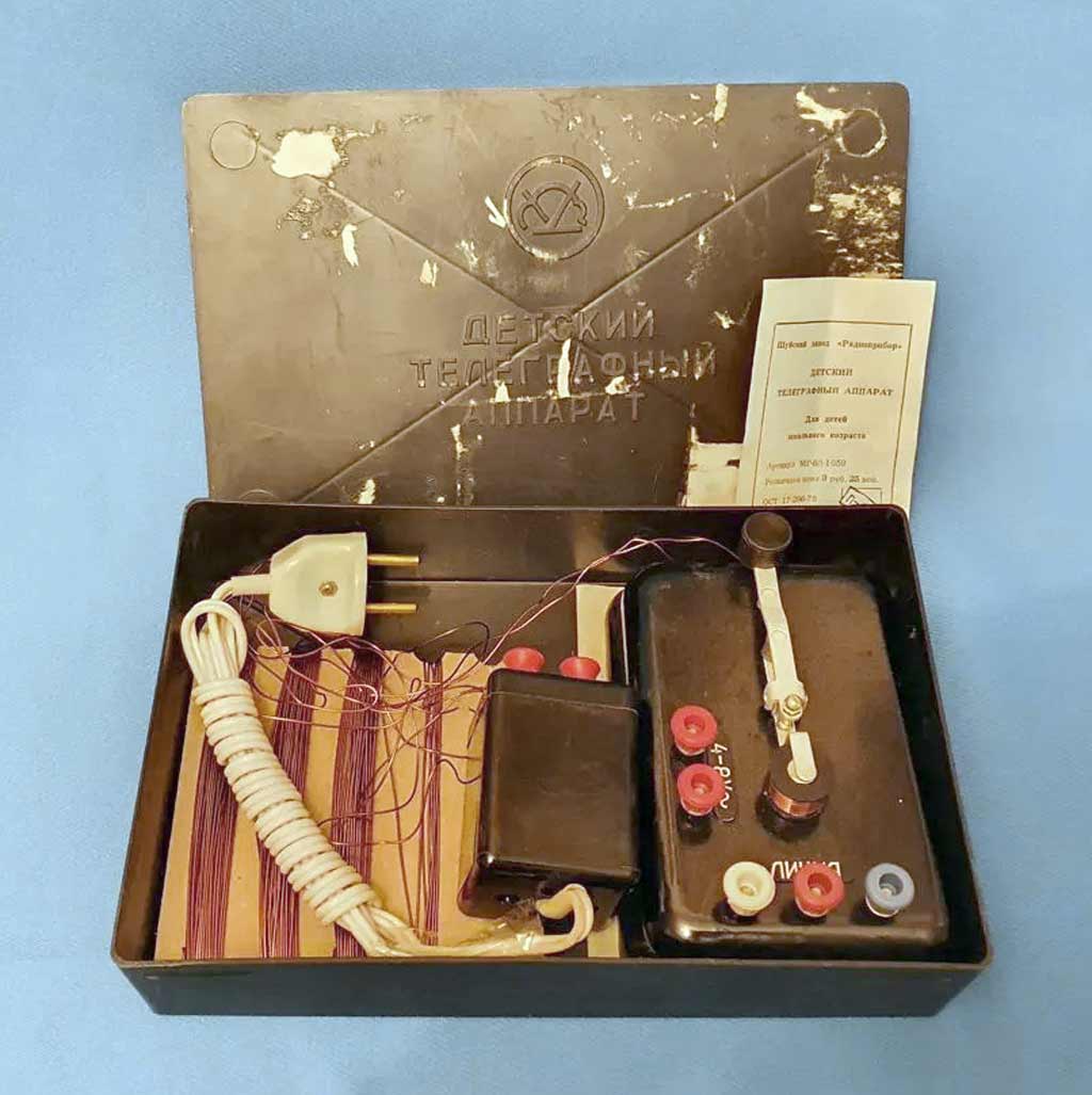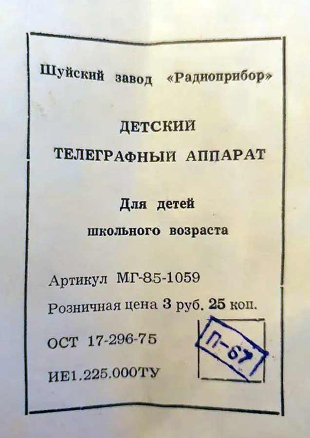 Детский телеграфный аппарат выпускался возможно с 1976 года Московским радиозаводом из комплектующих Шуйского радиозавода (Ивановская обл.). Предназначен для двухсторонней связи азбукой "Морзе".