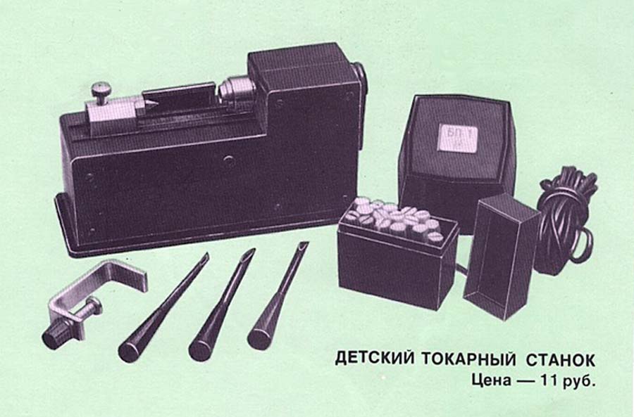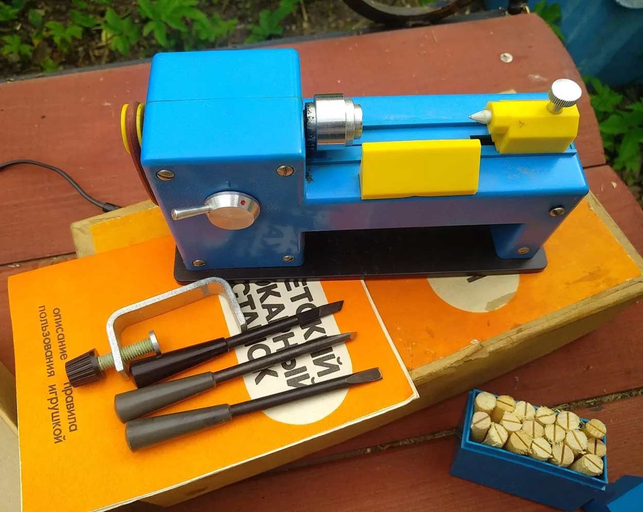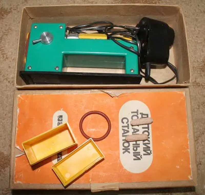 Игрушка "Детский токарный станок" ограниченно выпускался предположительно с 1980 года одним из Московских оборонных заводов.
