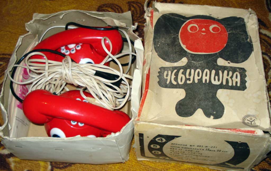 Электронный телефон "Чебурашка" производился предположительно с 1979 года А/Я 54, город Клинцы, Брянской области. Предназначен для связи между двумя абонентами с дальностью проводов до 10 метров.
