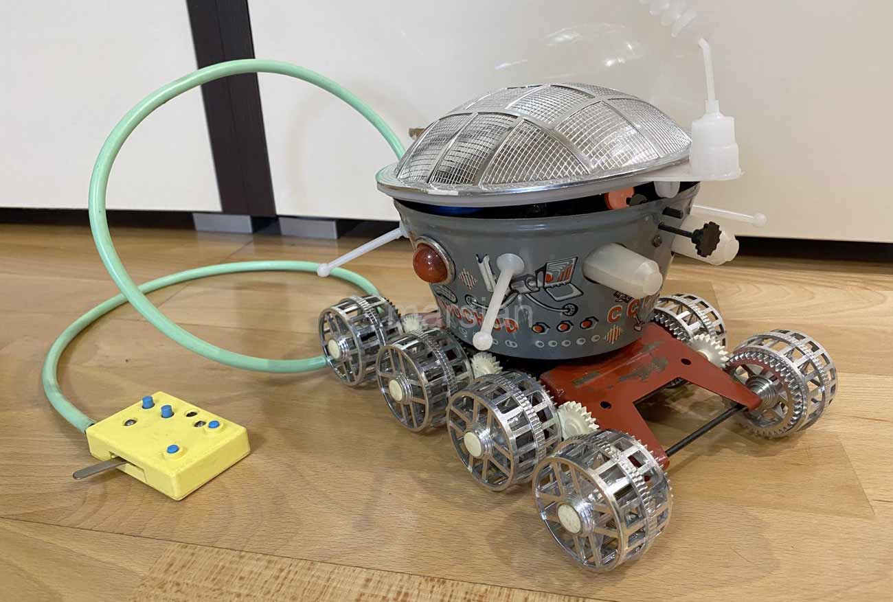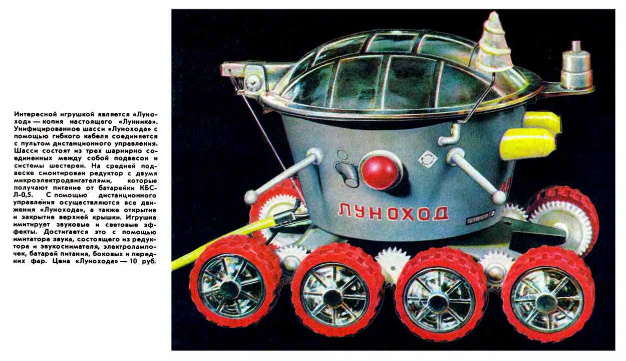 Игрушка "Луноход" производилась возможно с 1973 года. За время выпуска с 1973 по 1991 годы игрушка несколько раз модернизировалась. Менялось питание с батареи КБС-Л-0,5 на элементы 343, оформление.