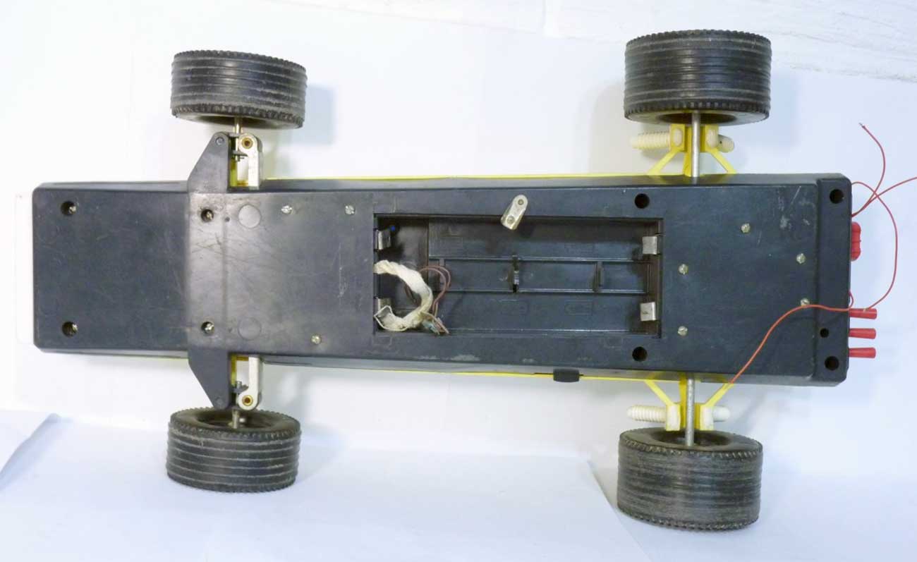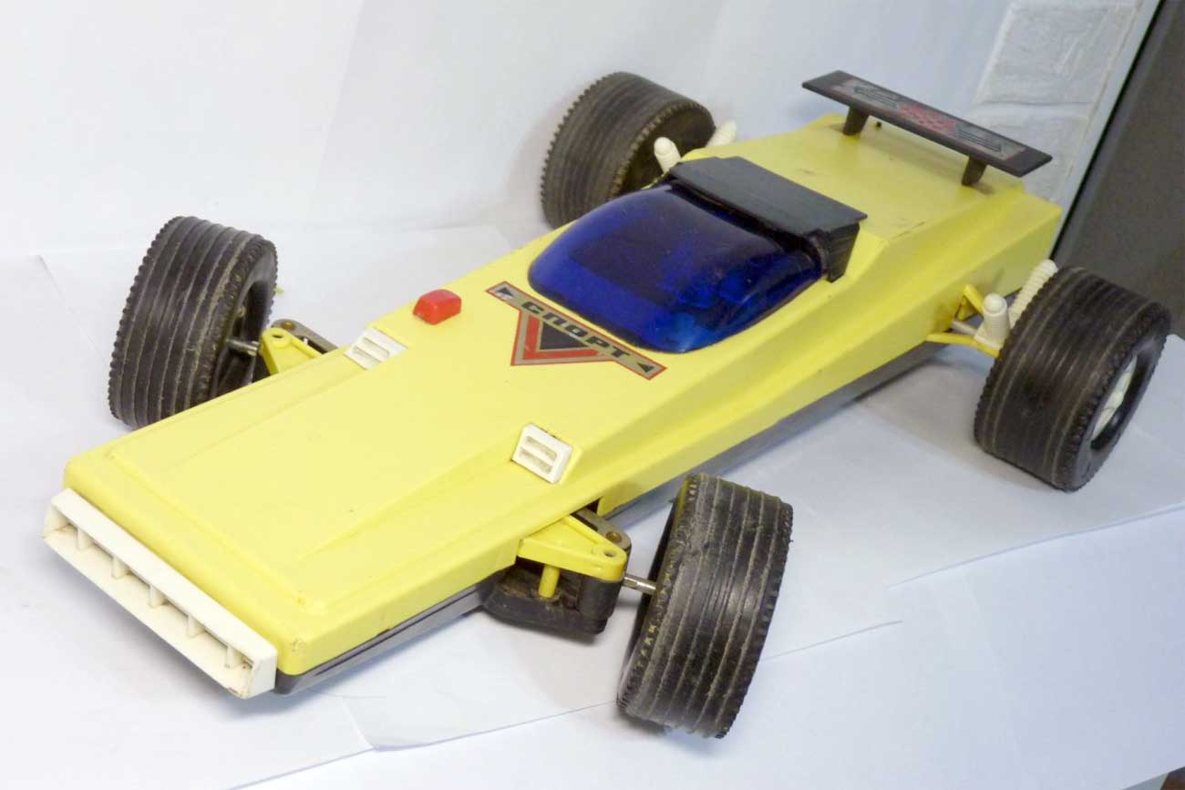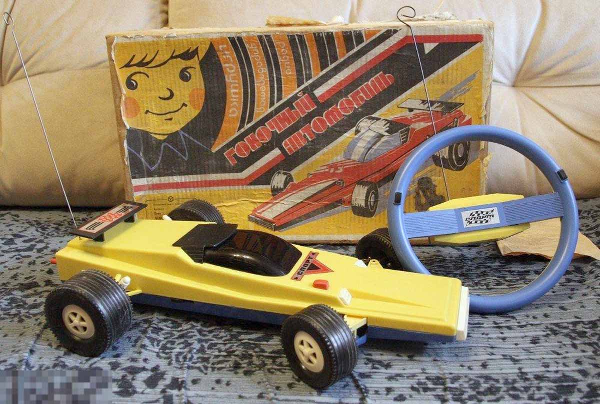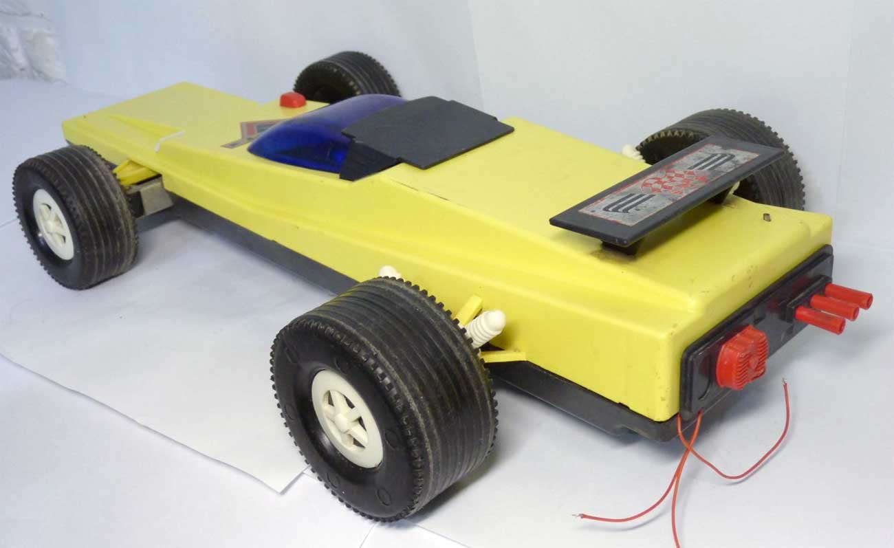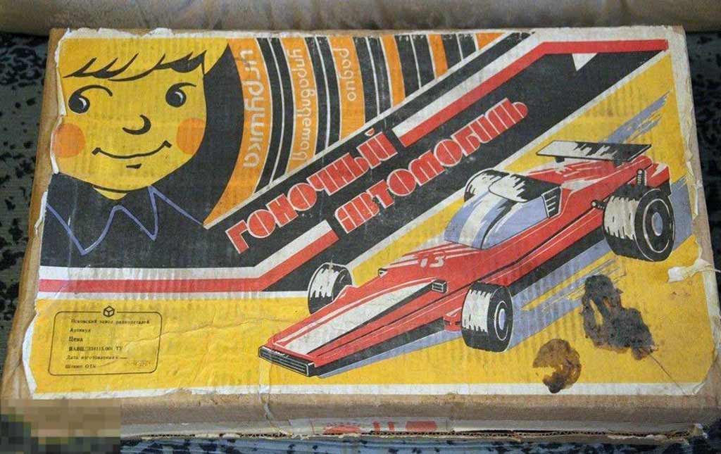 Радиоуправляемая игрушка "Гоночный автомобиль" Спорт выпускалась с 1991 года Псковским заводом радиодеталей в СССР. Внешне похожа на болид Формулы-1. Габариты 50х27х10 см.