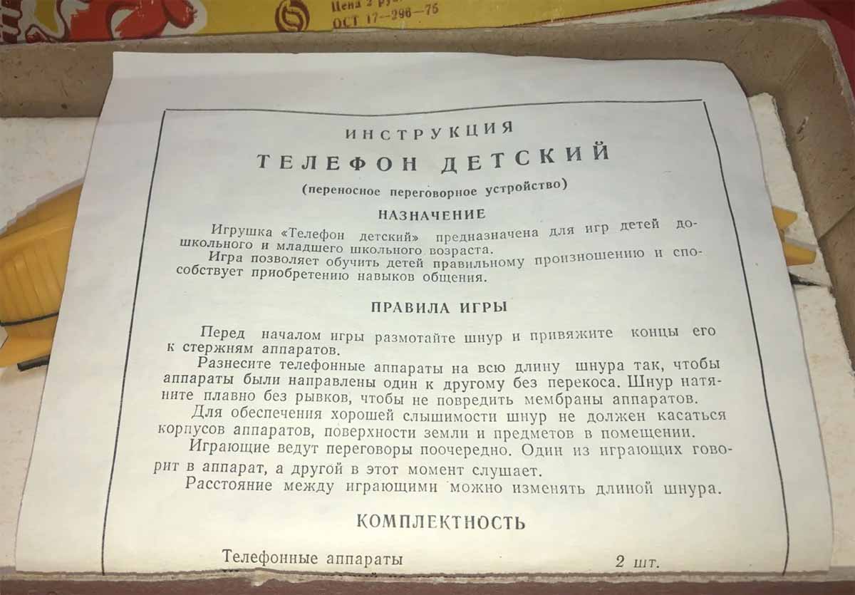 Телефон детский выпускался возможно с 1982 года. Телефон (переносное переговорное устройство по нити) предназначен для игр детей школьного и младшего школьного возраста. Смотрите последние 2 фото.