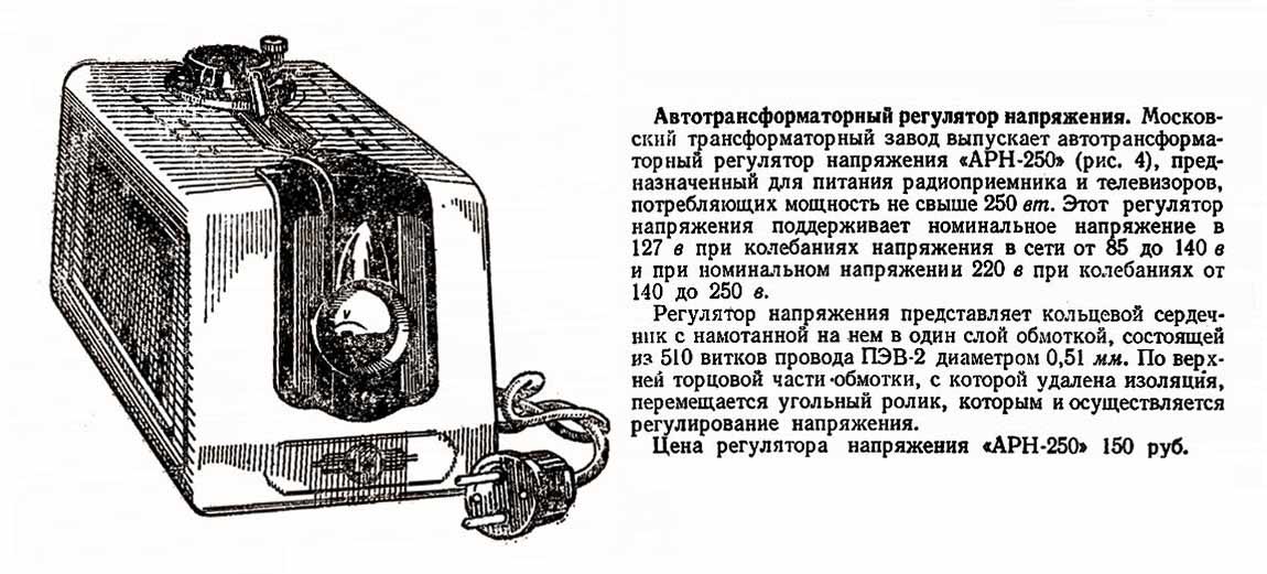 Описание автотрансформатора "АРН-250" в журнале Радио