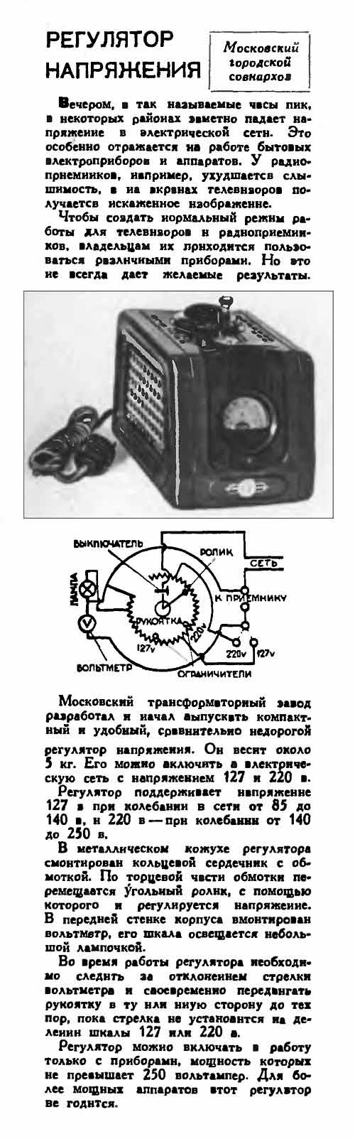 регулируемым по вольтметру напряжением 220 В. В 50...80 годы в вечернее