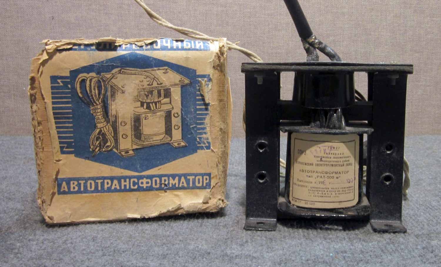 Регулировочный автотрансформатор "РАТ-200 м" выпускался с 1957 года Воронежским электроремонтным заводом. Служит для получения напряжения от 100 до 240 вольт от сети 220 В.
