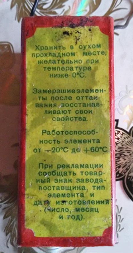 Начальное напряжение 1,48 В. Ёмкость 9 А/ч. Работоспособность элемента от -
