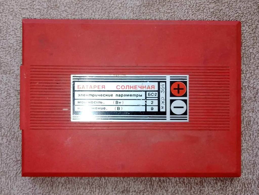 Солнечная батарея "БС-2" производилась предположительно с 1987 года Донецким заводом "Скиф". Номинальное выходное напряжение 9 В. Мощность 2 Вт.