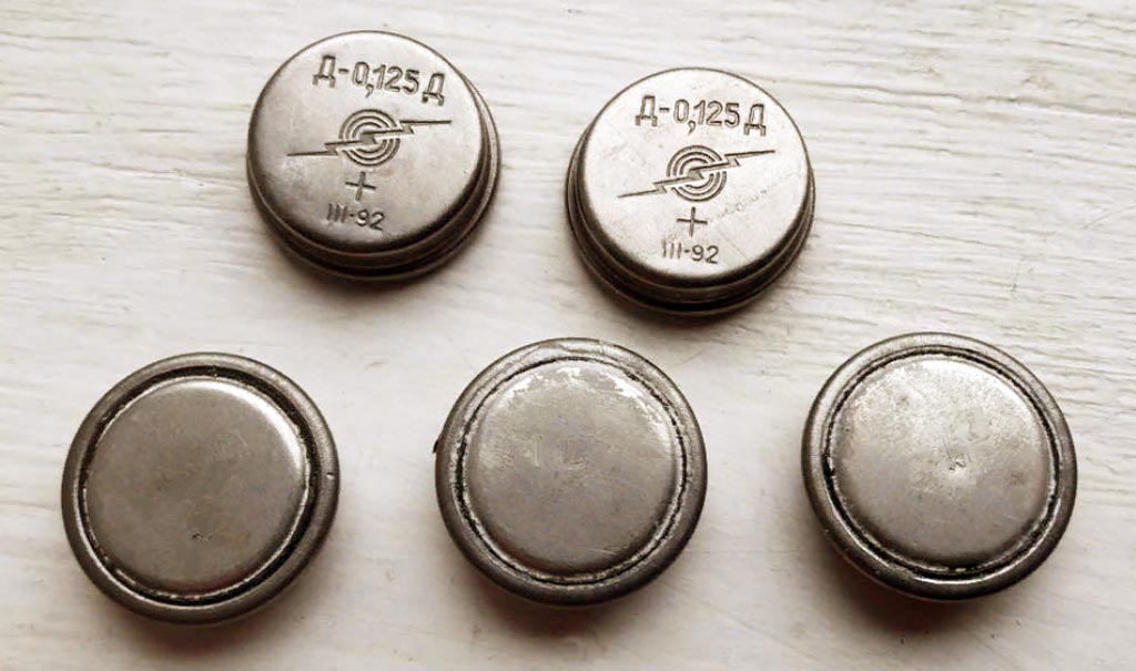 Напряжение 1,25 В. Ёмкость 0,125 А/ч. Диаметр 20 мм. Высота 6,6 мм. Масса