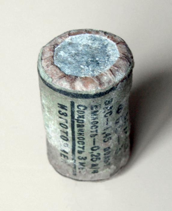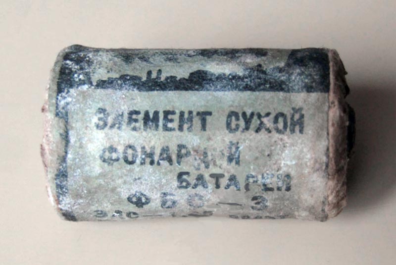 Элемент гальванический сухой фонарный "ФБС-3" выпускался предположительно с 1939 года. ЭДС элемента - 1,45 В. Ёмкость - 0,25 А/ч. Сохранность 3 месяца.