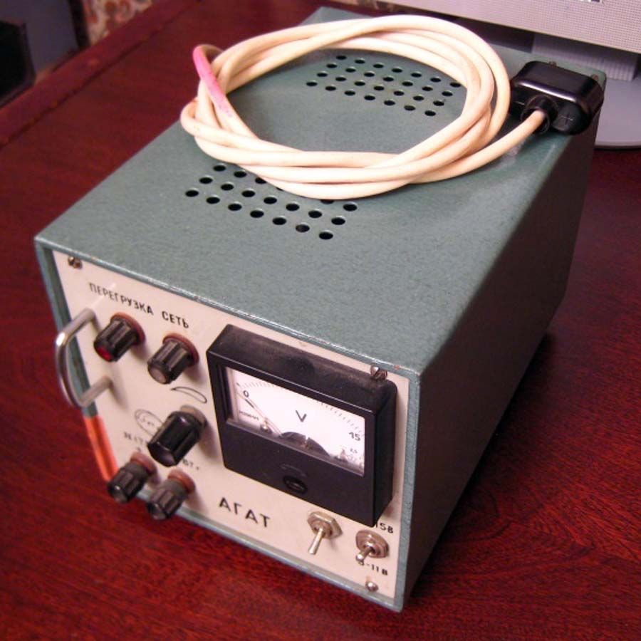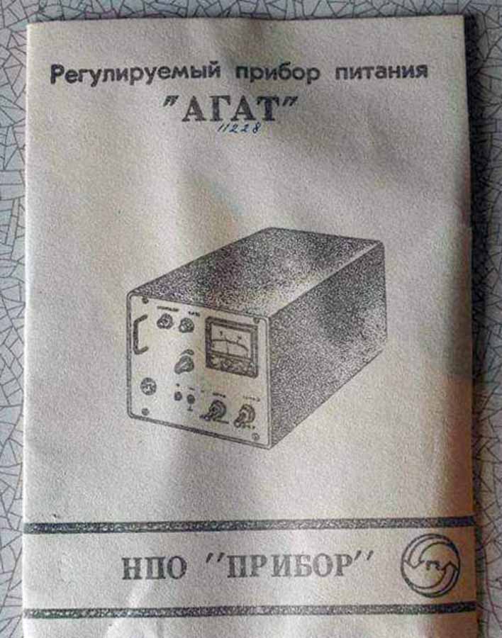 Регулируемый прибор питания "Агат" выпускался с 1978 года. Предназначен для получения регулируемого стабилизированного напряжения от 8 до 15 В. Прибор имеет электронную защиту от КЗ с индикацией.