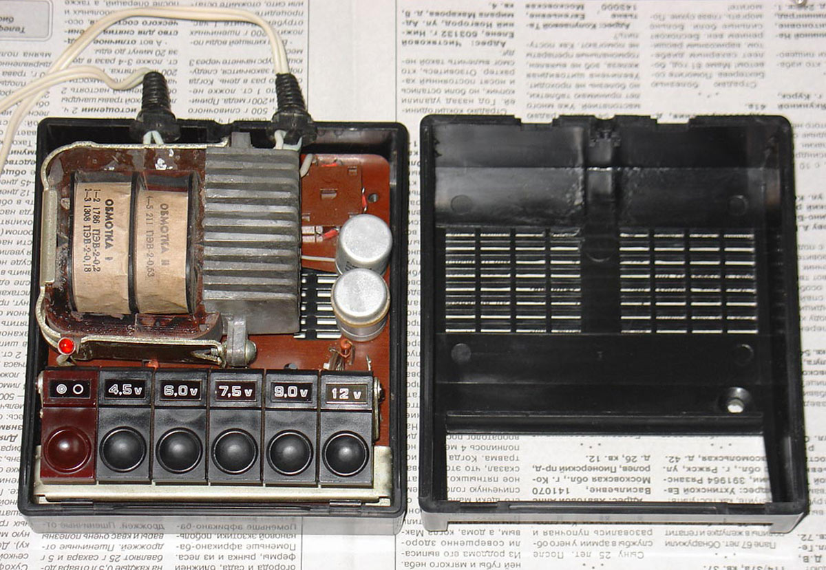 напряжение постоянного тока 4,5, 6, 7,5, 9 и 12 вольт при нагрузке до 0,5