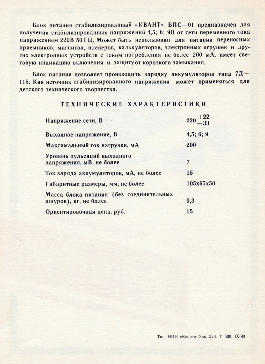 Блок питания стабилизированный "Квант" (БПС-01) с 1990 года выпускал Киевский завод "Буревестник".