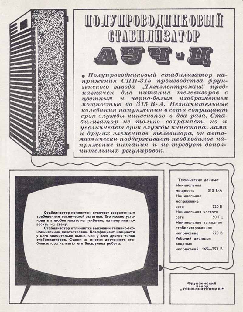 Полупроводниковый стабилизатор "Луч-Ц" СПН-315 выпускался с 1977 г.