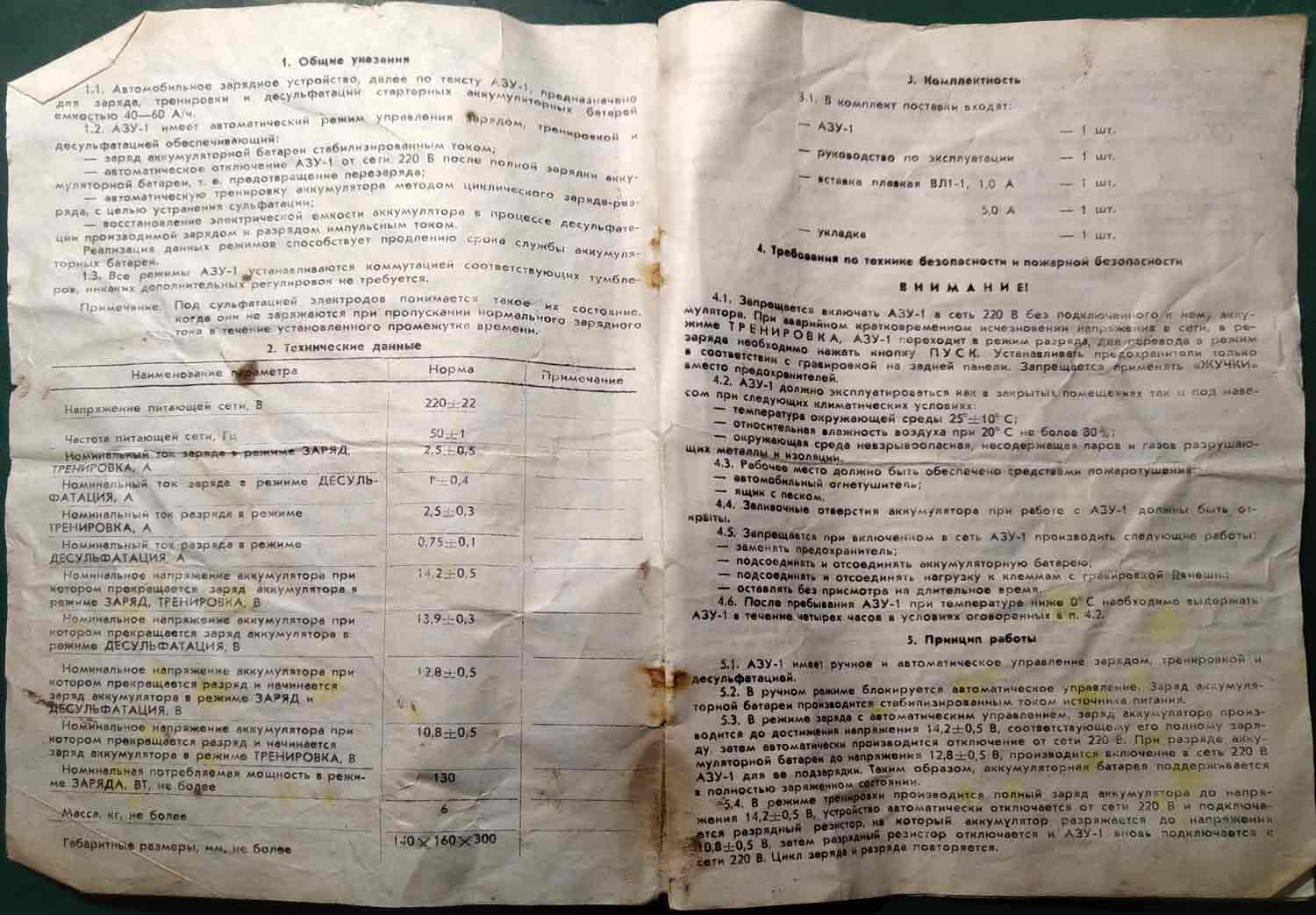 инструкцию зарядного устройства "АЗУ-1" предоставил Игорь Ляхов.