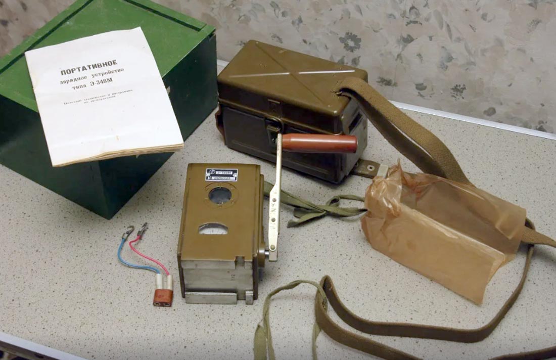 Портативное зарядное устройство "Э-348М" выпускалось предположительно с 1965 года. Зарядное устройство "Э-348М" предназначено для зарядки аккумуляторов используемых в армии на ходу и в стационаре.