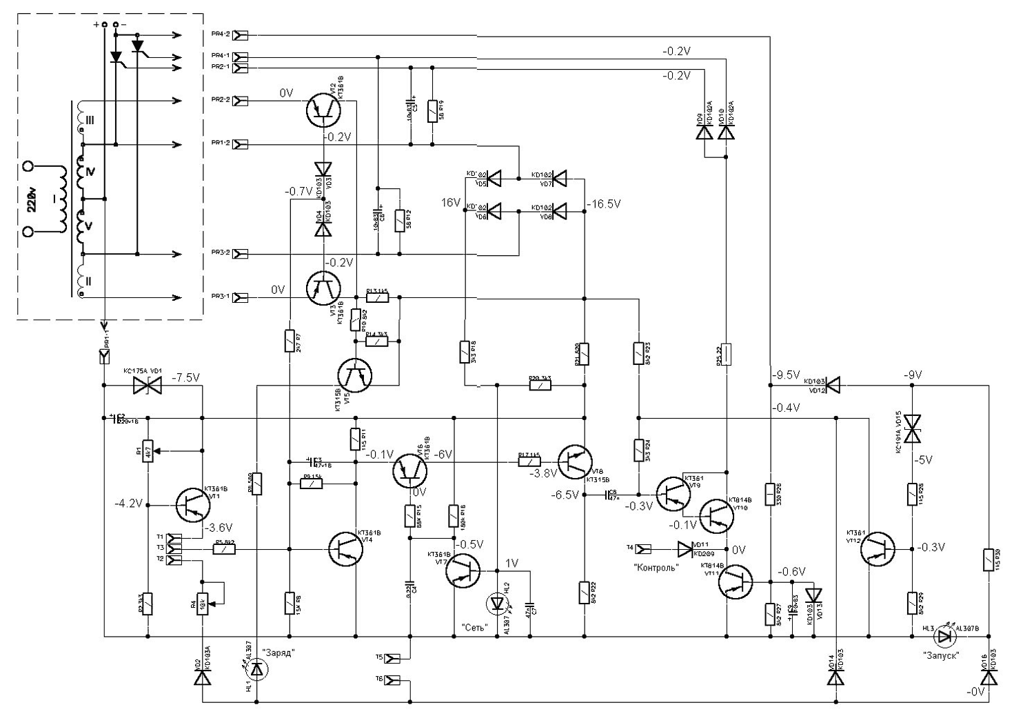 полупроводниковых приборов. Устройство предназначено: для заряда 6/12 В. аккумуляторов, а также для облегчения запуска двигателей легковых автомобилей в холодное время года при слабо заряженном аккумуляторе.