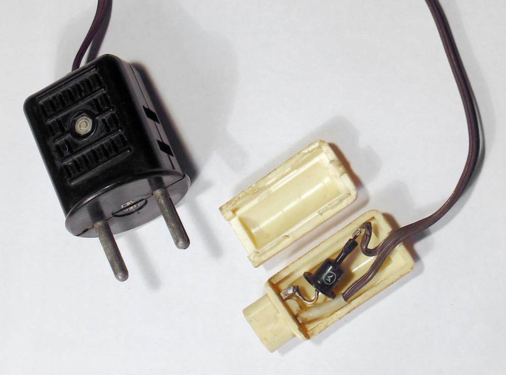 два гасящих резистора и выпрямительный диод. Аккумулятор находился под