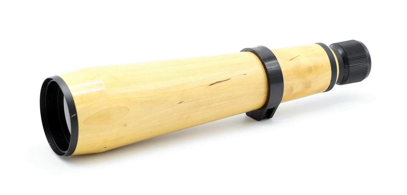 Труба подзорная деревянная "ЗРТ" 30x50 выпускалась возможно с 1990 года. Для наблюдения удаленных предметов туристами, охотниками, любителями спортивных состязаний.