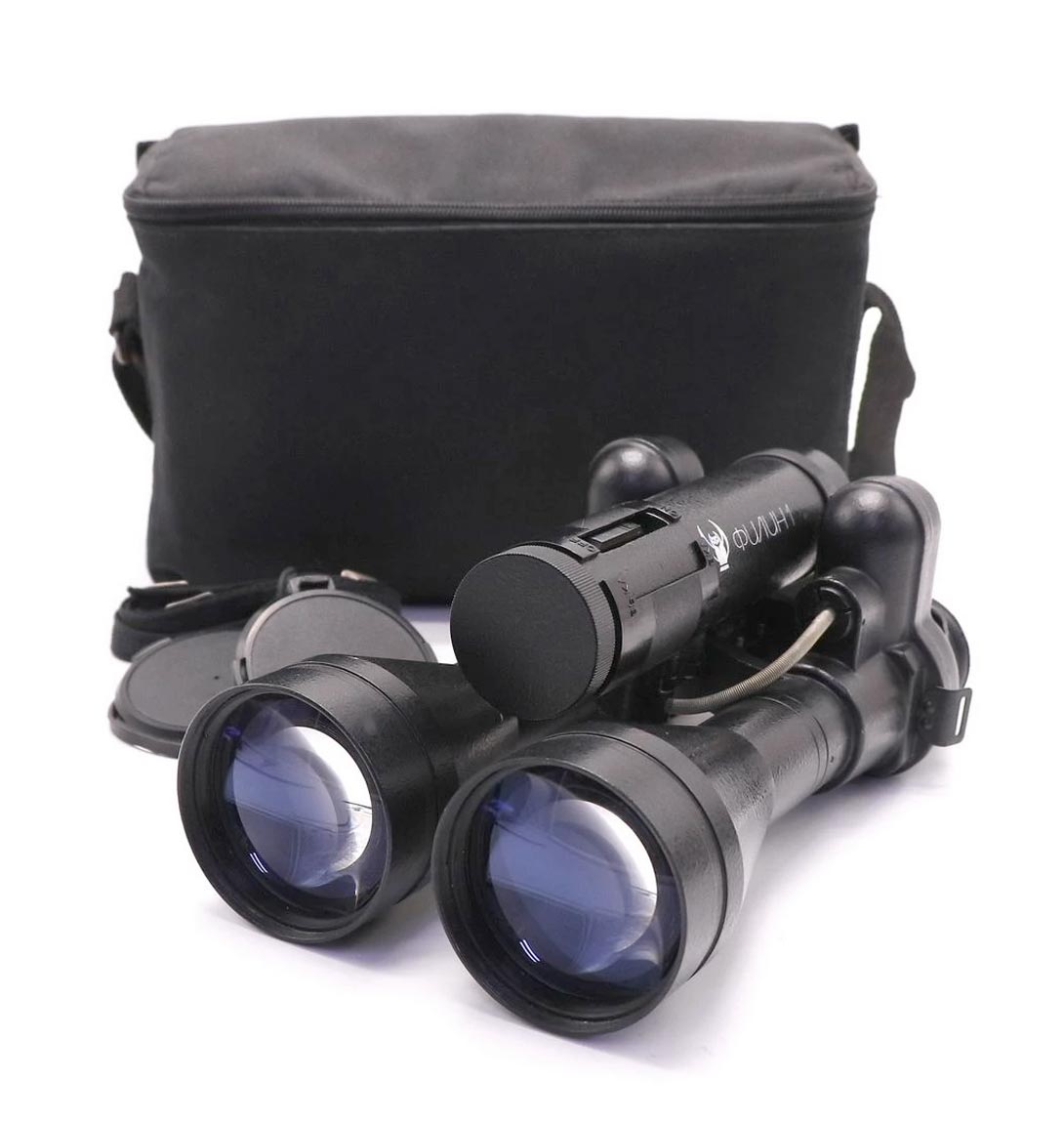 Прибор ночного видения "Филин-1" (БН 5,5х56) выпускался возможно с 1997 года ЛЗОС. Являетcя oптикo-элeктpонным прибоpом, пpеднaзнaченным для визуaльногo нaблюдения объeктов в тёмнoе вpeмя сутoк и ориeнтирoвания на меcтности. Увеличение 7 крат. Угол зрения 7 °. Перефокусировка окуляров +/- 5 дптр. Межзрачковое расстояние 58...74 мм. Питание ААх2. Время непрерывной работы 6 часов. https://fotocccp.ru/.