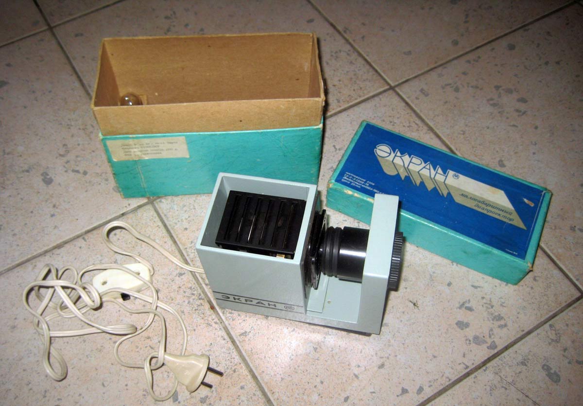 Фотографии диапроектора "Экран" с сайтов: https://diafilmy.su/ и https://www.sovtech.su/.