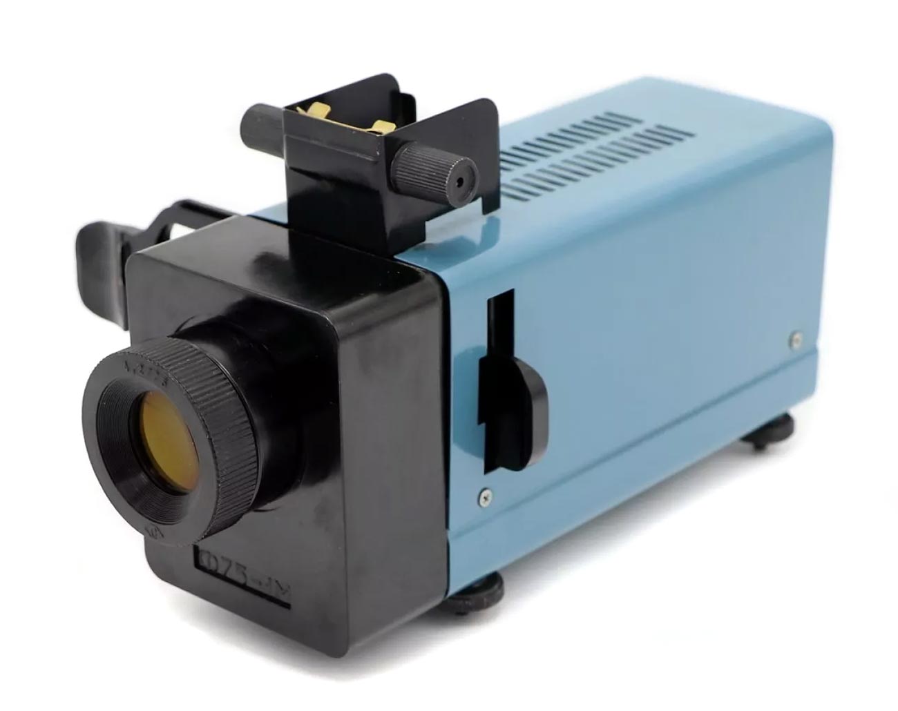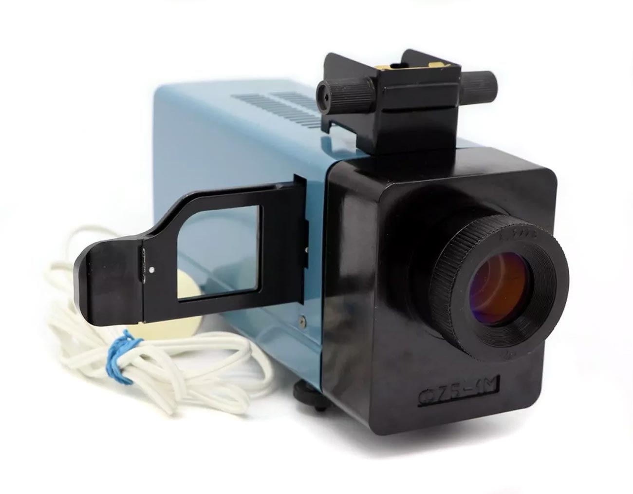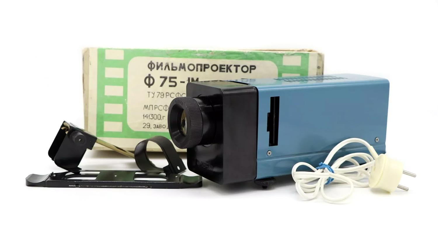 Фильмопроектор "Ф75-1М" с 1986 года выпускал Загорский завод школьного приборостроения №6. Для просмотра диафильмов и слайдов.