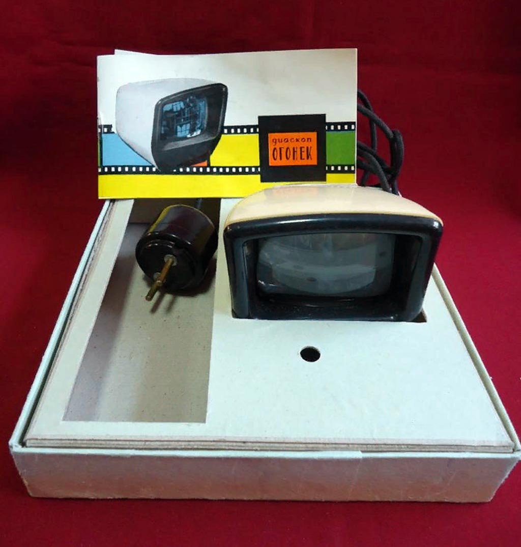 Диаскоп "Огонек" выпускался с 1966 года на ММЗ. Диаскоп предназначен для увеличения экранной линзой подсвеченного слайда с форматом кадра - 24 х 36 мм.