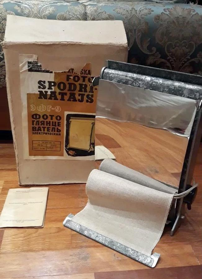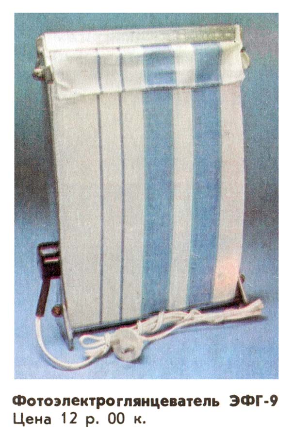 Электрический фотоглянцеватель "ЭФГ-9" производился возможно с 1972 года Рижским заводом установочных изделий, возможно и некоторыми другими заводами страны.