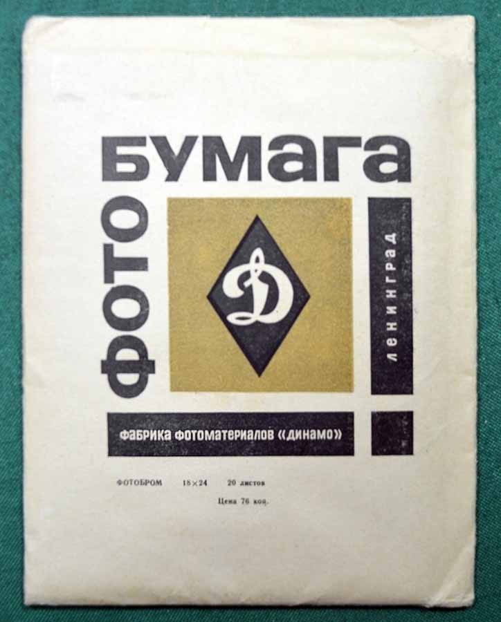 Фотобумага "Фотобром" выпускалась Ленинградской фабрикой "Динамо" предположительно с 1967 года. На фотографиях размер фотобумаги 18х24 см. Были и другие.