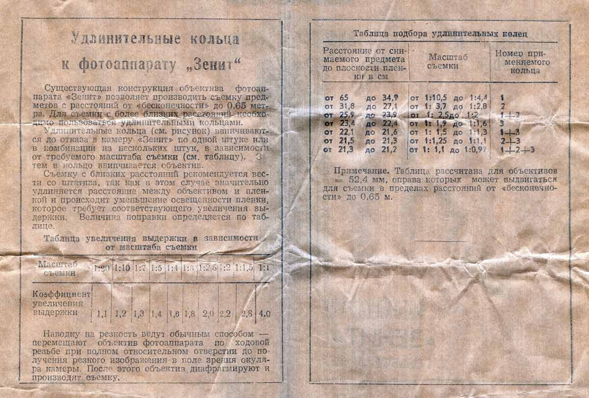 заводом "ФЭД". Удлинительные кольца предназначены для проведения съёмки