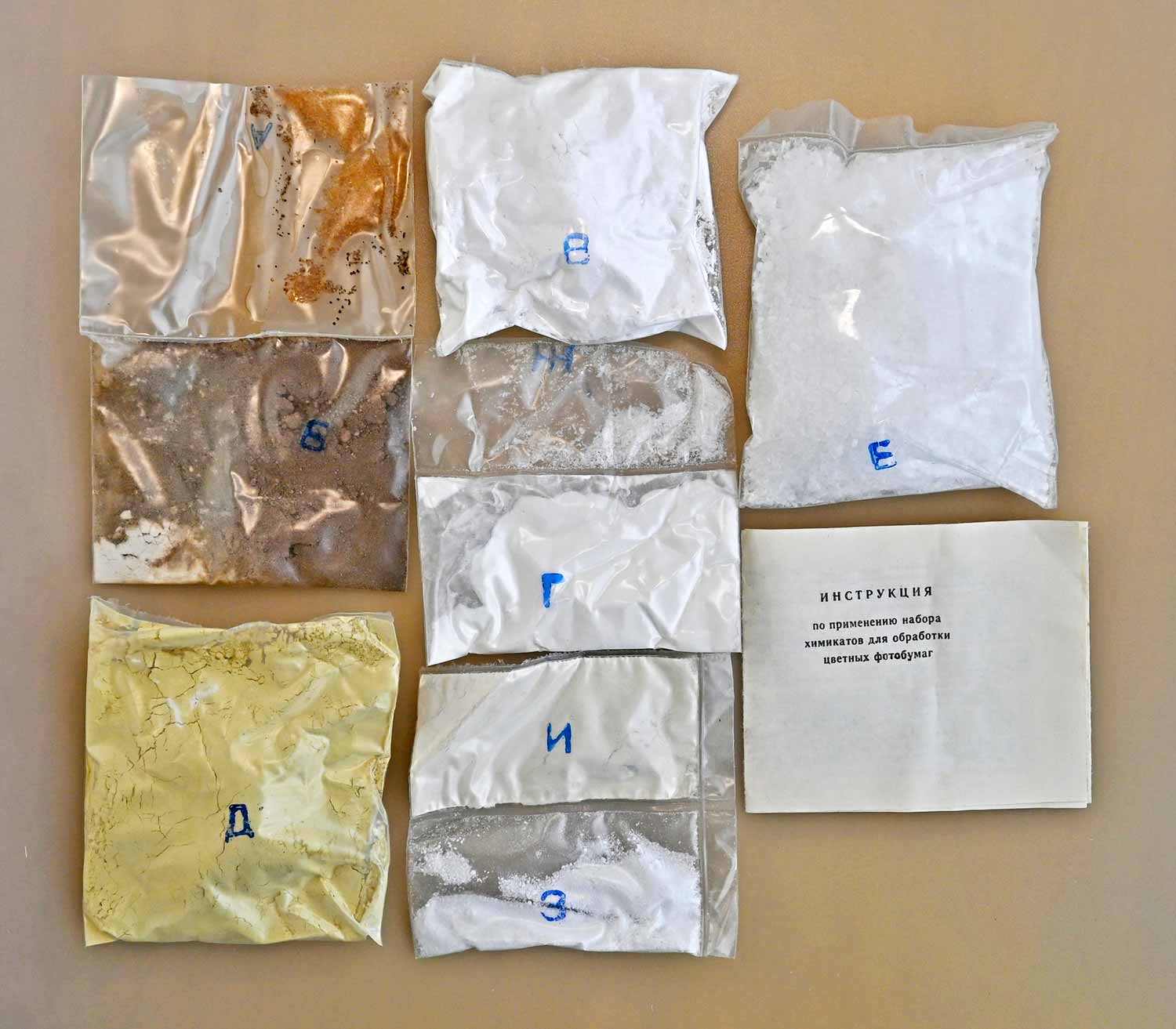 Набор химикатов для обработки цветных фотобумаг выпускался с 1981 года Долгопрудненским заводом тонкого органического синтеза. Инструкция. Фото Вячеслава Булочникова, Мытищи.
