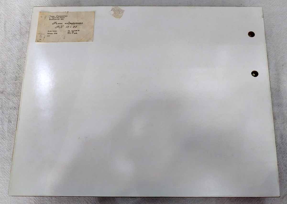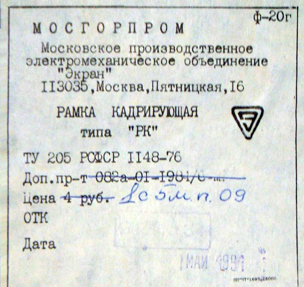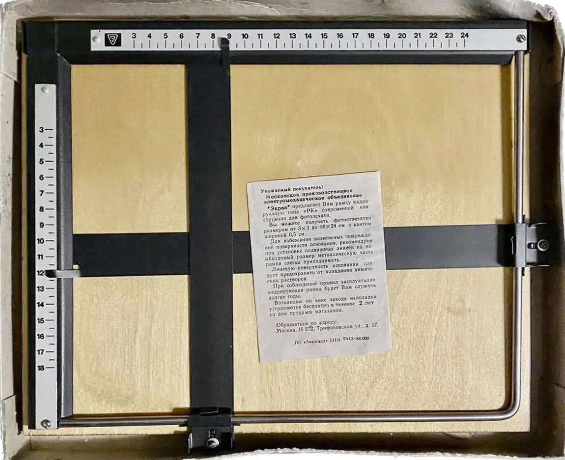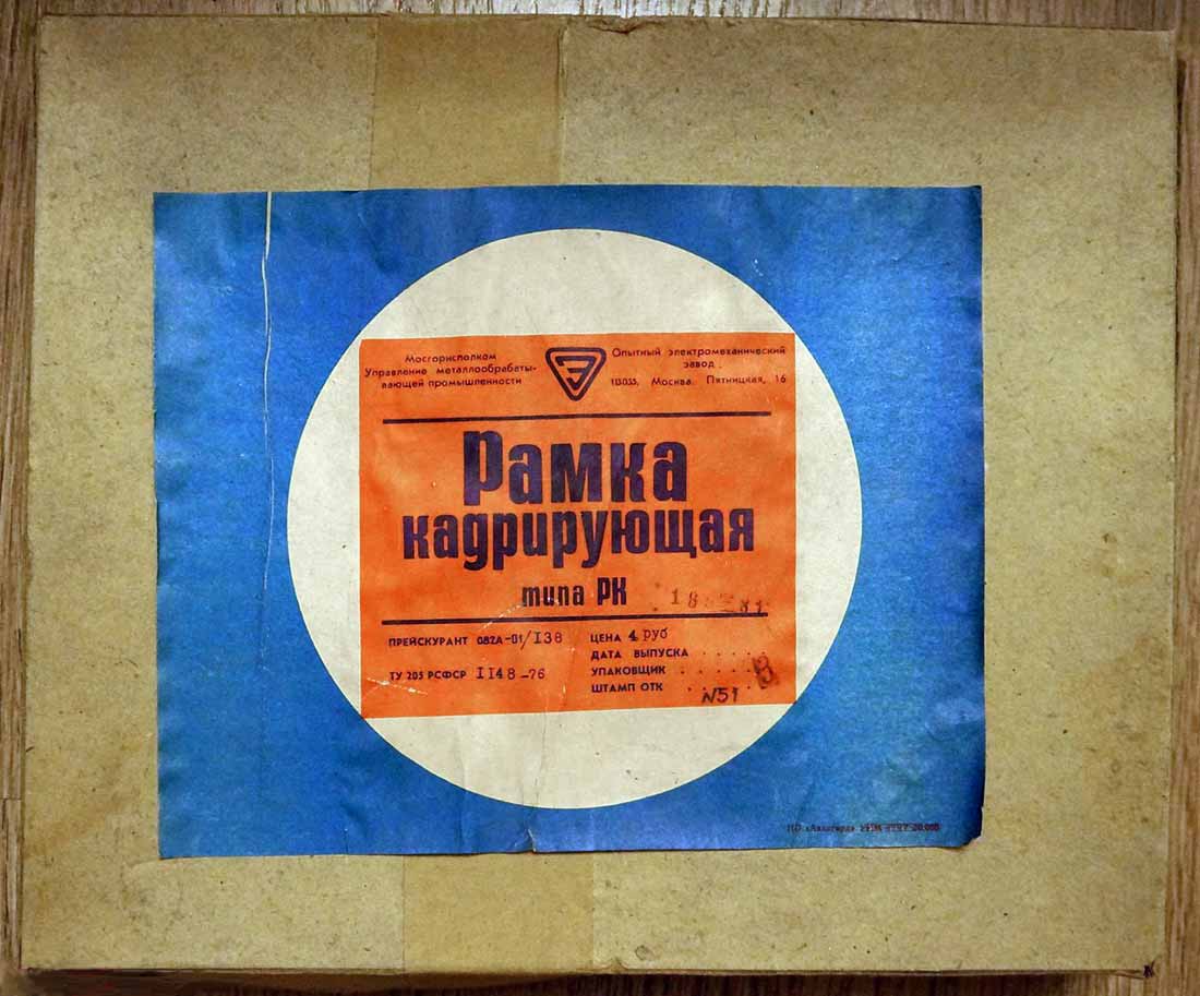 Рамка кадрирующая "РК" производилась с 1973 года несколькими предприятиями страны. РК предназначена для фотопечати фотографий любых размеров до 18 х 24 мм с белой окантовкой по четырём сторонам.
