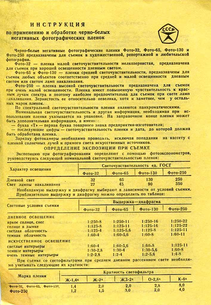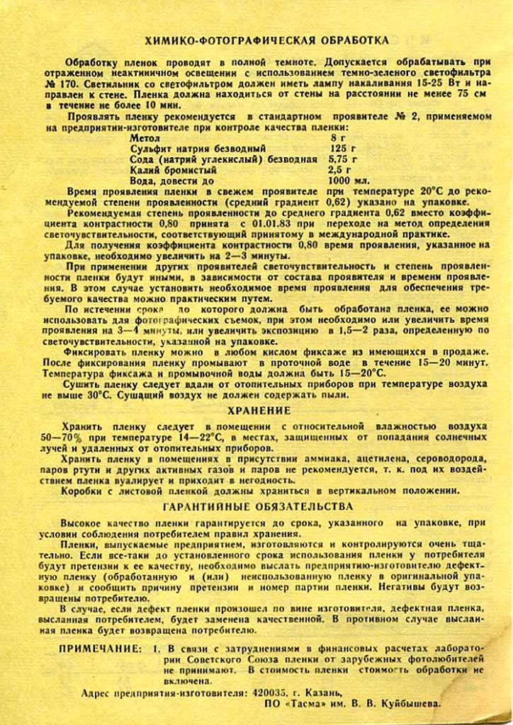 по ТУ 6-41-1000.П-90 (64 ед.). Основные фотоплёнки выпускались по ГОСТ