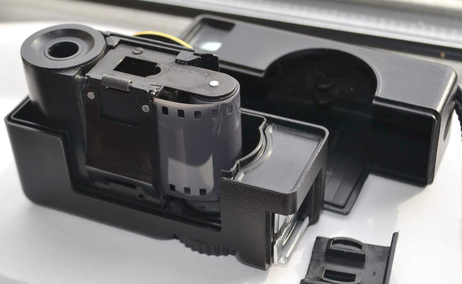 подачей отснятой плёнку в пустую приёмную кассету вместо катушки, что исключает