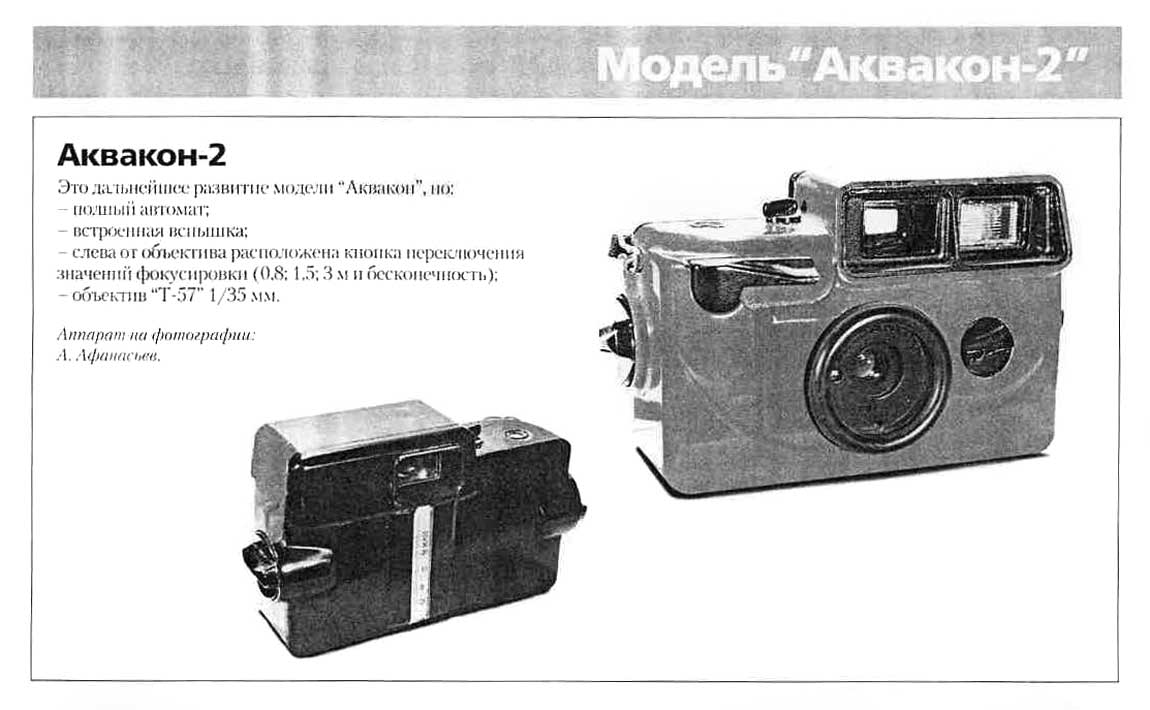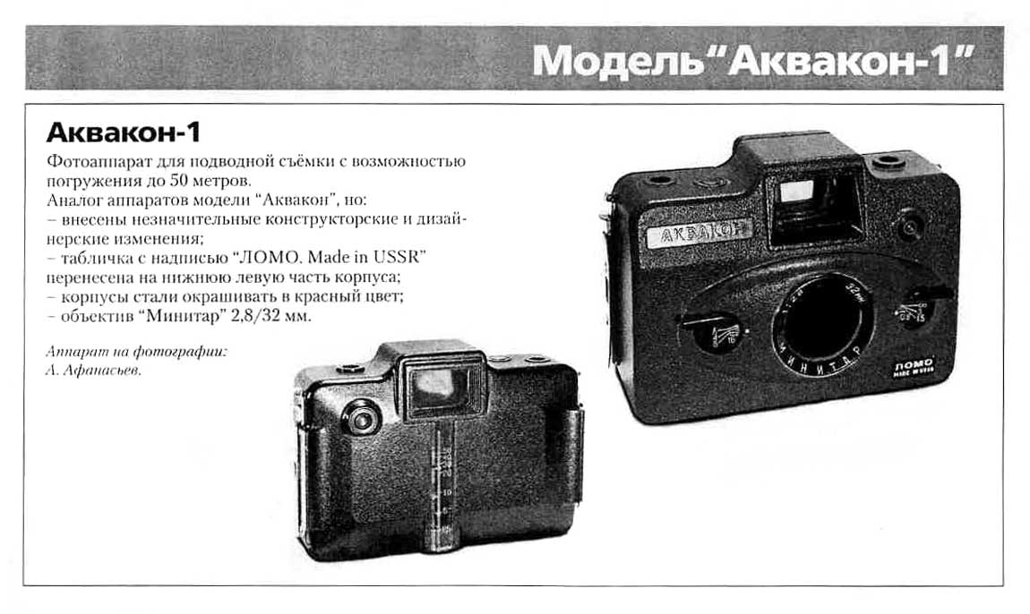 Фотоаппараты для подводной съёмки "Аквакон-1", "Аквакон-1а" и "Аквакон-2" выпускались возможно с 1982 года "ЛОМО". Подробнее на сайте https://urban2080.ru/. Фотографии так же с сайта.