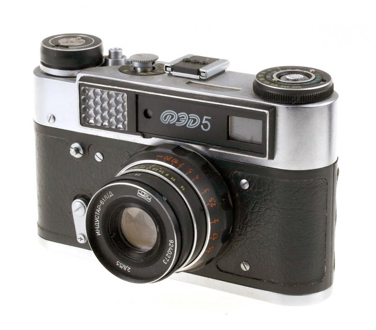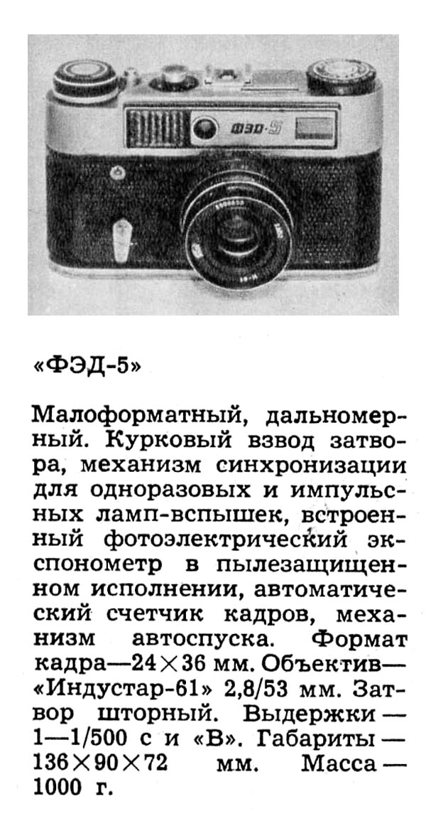 Фотоаппарат "ФЭД-5" производился Харьковским производственным машиностроительным объединением "ФЭД" с 1977 по 1990 годы.