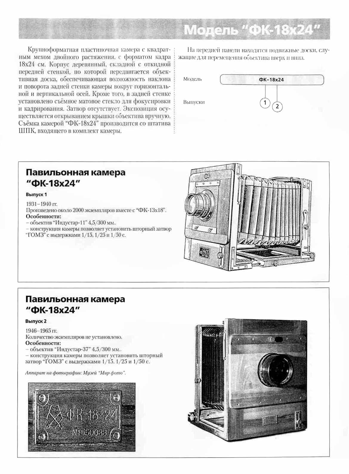 Фотокамера "ФК-18х24" начала выпускаться с 1931 года несколькими предприятиями страны. К началу 1969 года фотокамера стала именоваться уже как "ФКД-13х18".