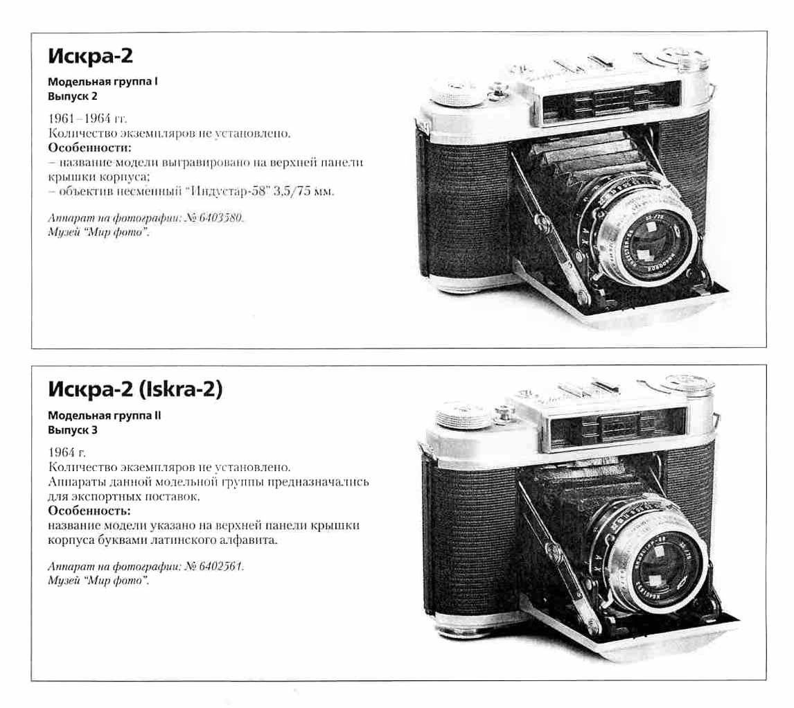 Камеры одинаковы, но в модель "Искра-2" встроен фотоэлектрический экспонометр.