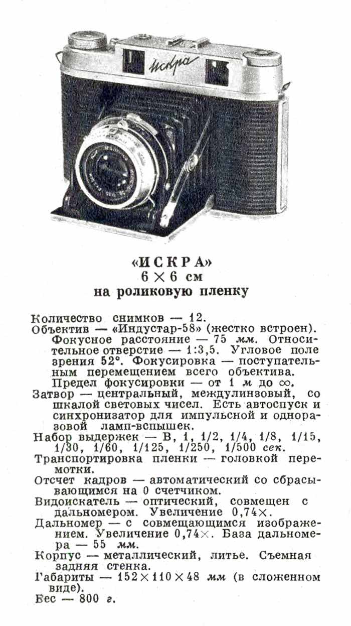 "Искра" - это среднеформатная дальномерная клапп-камера, с механизмом