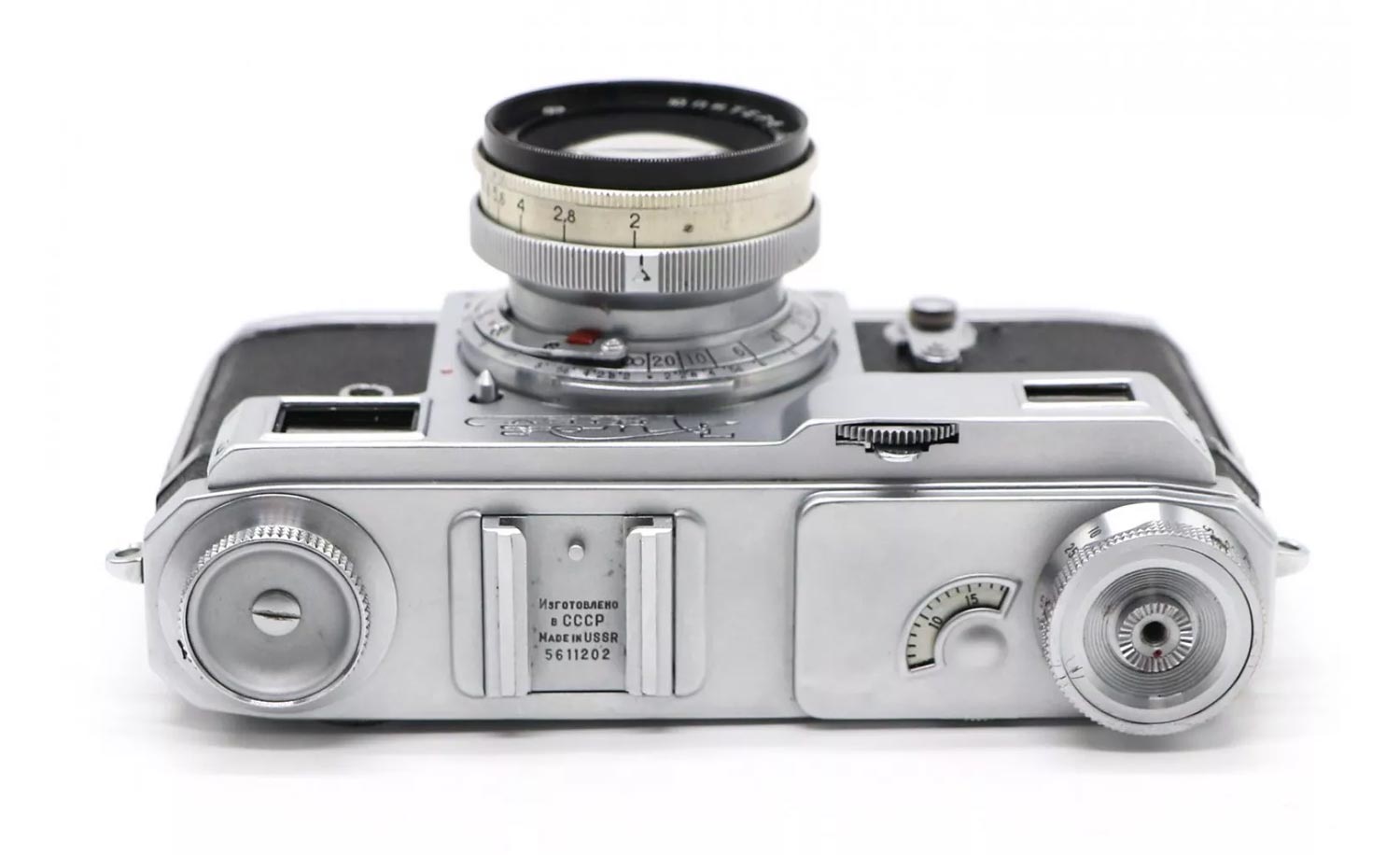 Фотоаппарат оснащён объективом "Юпитер-8". Корпус модели из алюминиевого