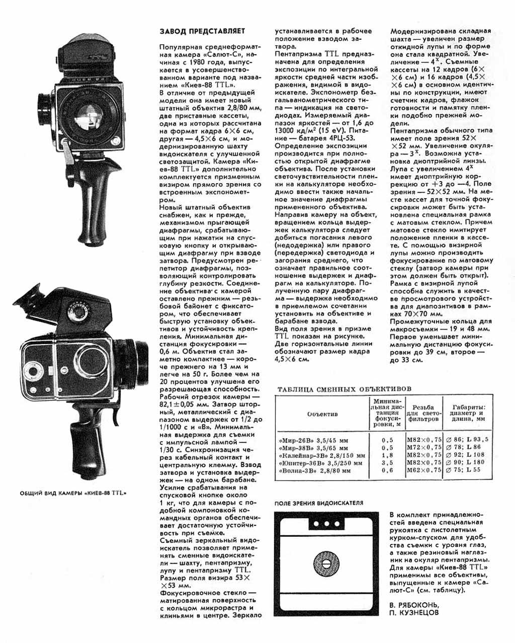 выпускался и как "Киев-88 TTL", отличаясь сменной пентапризмой с несопряжённым