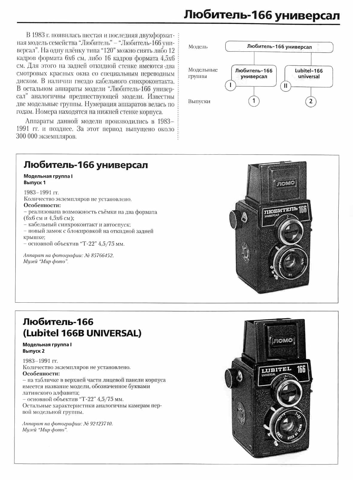 камеры "Любитель-166-универсал" 1992 года. Сканы из книги "1200