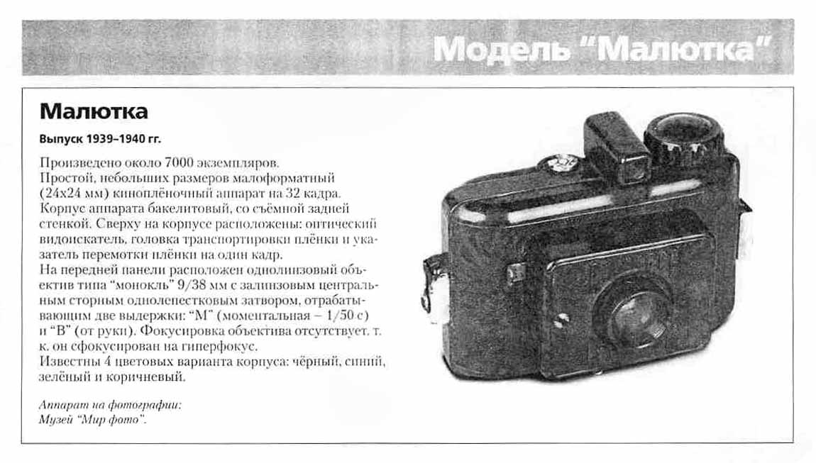 с 1940 года Ленинградским ГОМЗ. Камера "Малютка" улучшенная версия фотоаппарата